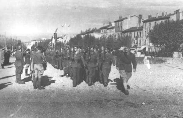 Puis je reçois l’ordre de retourner à Romans où le régiment arrive le 7 Septembre. Ce ne sera pas pour longtemps car j’ai demandé à être reçu par le Général Brosset. J’apporte la bonne nouvelle de l’intégration du régiment à la 1ère D.F.L.