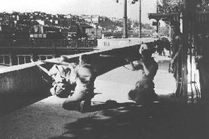 Deux toutes jeunes filles qui étaient juchées sur les chars sont rentrées avec nous, insensibles à la panique générale. Elles rient avec nous des mitraillades.