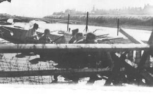 Dès que les chars du premier peloton sont au complet, ils franchissent à leur tour le pont et pénètrent dans la ville. Je les dirige en jeep.