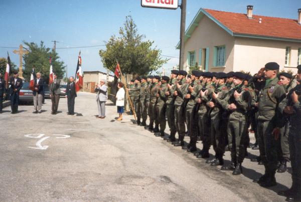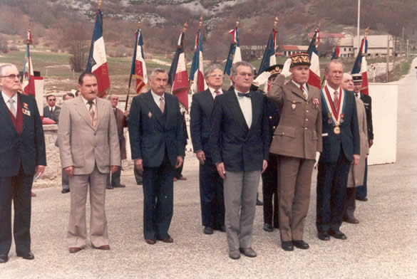 Un fort nombreux public assistait à ces cérémonies où l'on dénombrait pas moins de 22 porte-drapeaux. Après le dépôt de gerbes dédié aux enfants de Vassieux plusieurs personnalités prenaient la parole. M. ROUX maire de Vassieux mettait en exergue l'héroïsme de tous les combattants. M. Elie ROSSETTI président du 11ème cuir dans un superbe poème particulièrement émouvant mettait l'accent sur le sacrifice de ces hommes. Pour conclure M. SIMION sous préfet soulignait l'importance que doit tenir le souvenir de ces hauts faits d'arme "Au pied du mémorial qui aux passants rappelle que notre immolation restera immortelle". Cette cérémonie se terminait par un défilé d'un détachement d'appelés du 11ème cuirassiers présents pour perpétuer le souvenir.