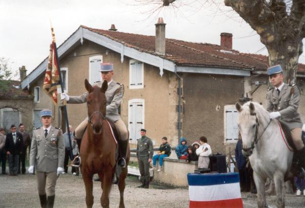 A l'occasion du vin d'honneur offert par la Municipalité de Bourg-de-Péage à la salle Jean Cocteau, M. Georges DURAND, député, lieutenant-colonel de réserve indiquait qu'il avait servi lui- même à une autre époque au 2ème Régiment de Cuirassiers et exhibait le képi d'alors. Le commandant de Seguin avec son adjoint exhibaient eux, la nouvelle tenue de notre armée (11ème cuirassiers) actuelle. Nous, les anciens, avons réalisé que nous étions déjà entrée dans l'Histoire de France.