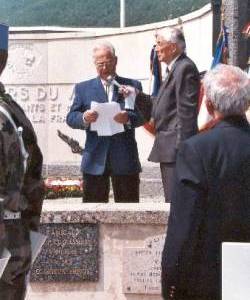 Depuis plusieurs années, il s'arrête devant cette nécropole, en ce lieu sacré qui bouleverse son esprit, en ce lieu qui tourmente ses pensés, et qui lui impose le recueillement. Il réfléchit, il regarde ce monument, il passe en revue ces croix à l'alignement impeccable et il est rempli d'une intense émotion. Ces croix ne se soucient guère des gens qui ne font que passer, mais elles enseignent à ceux qui s'arrêtent, qu'ici sont morts des héros, victimes de leur engagement, de leur courage et que leur sang, il y a 70 ans, a abreuvé ces terres du Vercors. Et l'écho, 70 ans après, ne s'arrête pas de chanter l'espoir qui les animait. Hélas, un jour, une balle meurtrière est venue arrêter l'élan patriotique dont leur cœur était gonflé. Parce qu'ils avaient dit non à l'esclavage et à la honte ; parce qu'ils n'ont pas voulu accepter le destin que les lâches leur préparaient, ils ont payé de leur sang le choix qu'ils avaient fait. Grâce à eux, nous et nos enfants pouvons vivre aujourd'hui librement. C'est pourquoi, en cette journée ils ont leur place, et ils sont présents parmi nous.