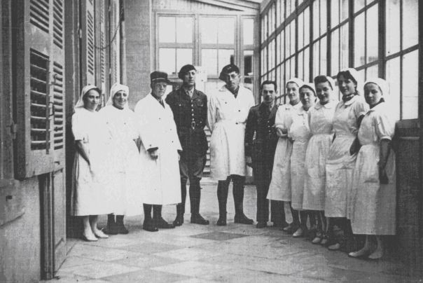Le Docteur Ganimède (3ème en partant de la gauche) et le personnel de l'hôpital de Romans